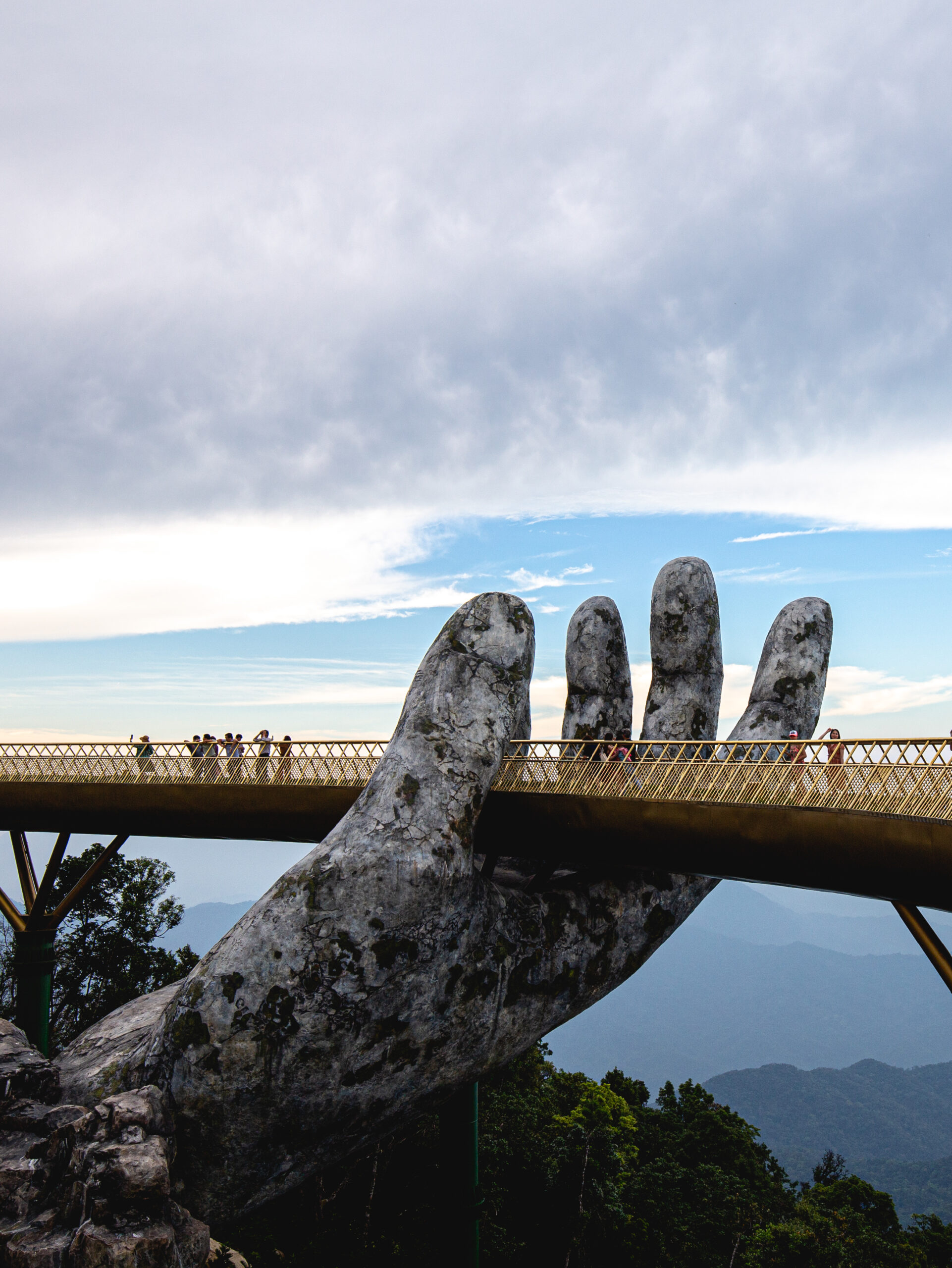 Golden Bridge- This new Vietnamese-designed Bridge at Sun World Bana Hills Danang was introduced to the world during a prestigious fashion show since they have used the golden bridge as a runway. The models in their bridal gowns, fog and mountains in the background, it definitely gave a walk to the sky feels. This made the general public fall in love for this mind- blowing golden bridge.